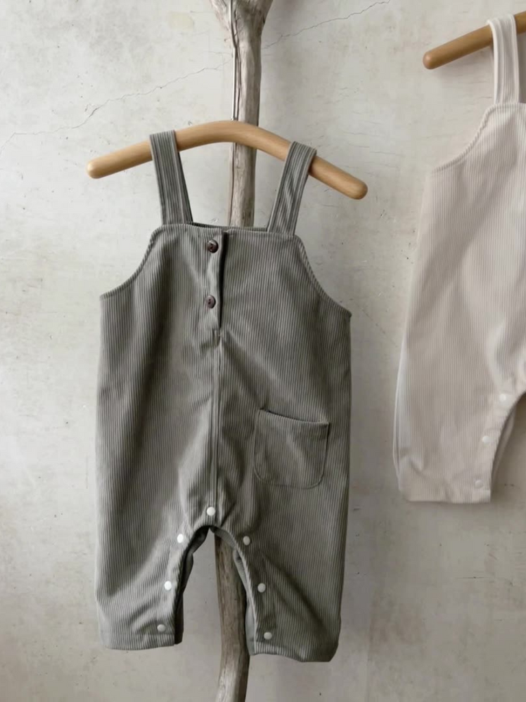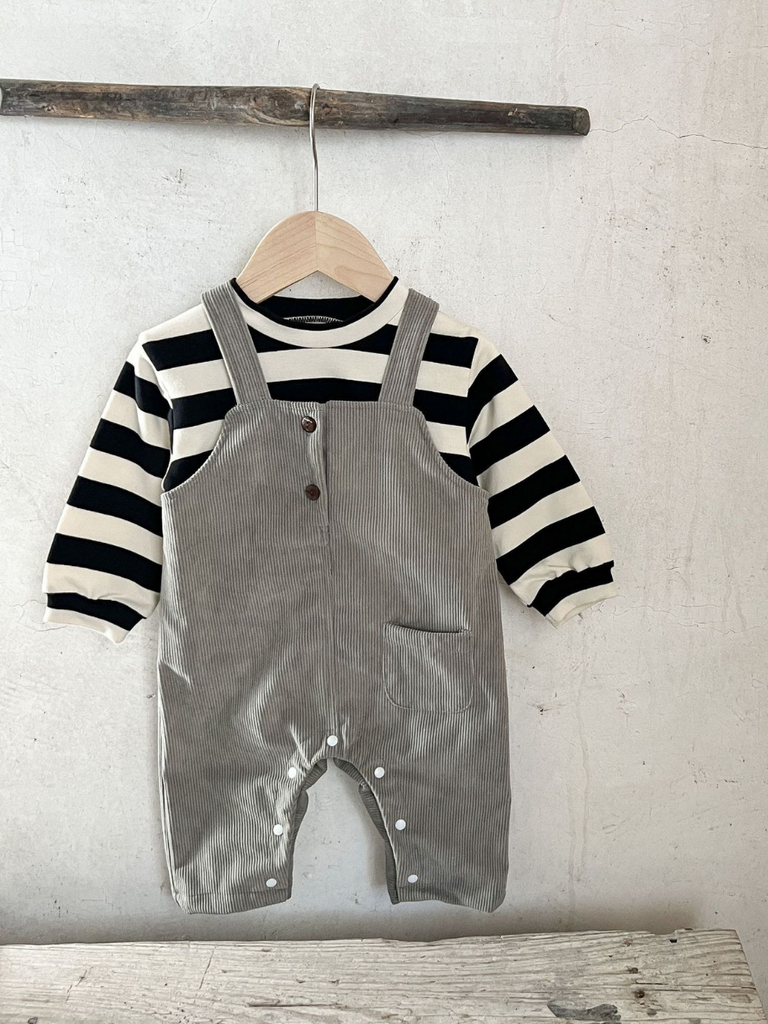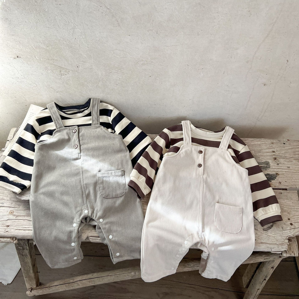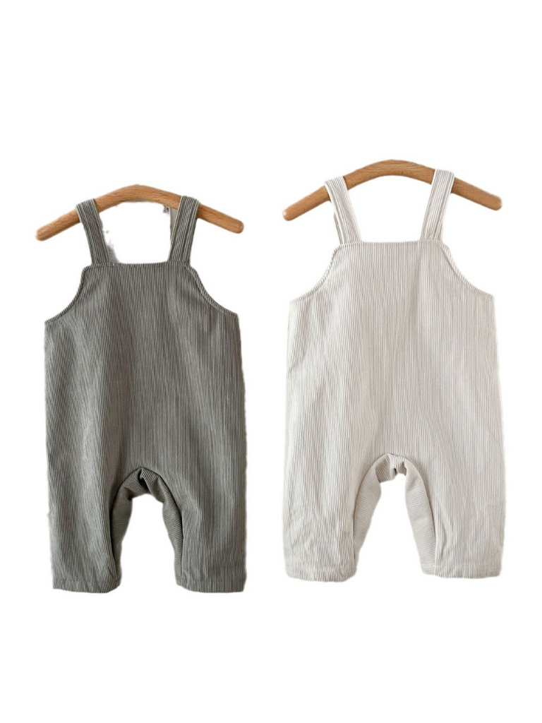 These adorable and functional baby jumpsuit overalls are a must-have for any baby wardrobe. Made from soft, breathable fabric, these overalls are perfect for daily wear, providing comfort and style. Featuring a classic striped pattern in beige and white, they offer a timeless and neutral look suitable for any occasion. With convenient buttons and a simple design, these overalls make dressing your little one a breeze.
