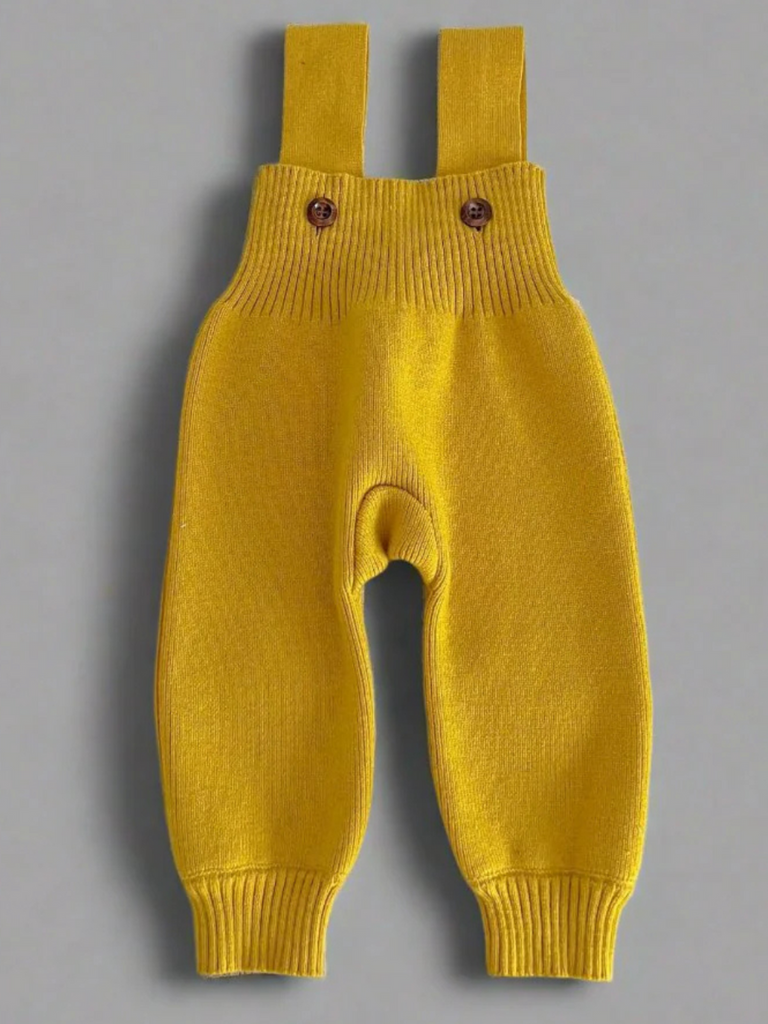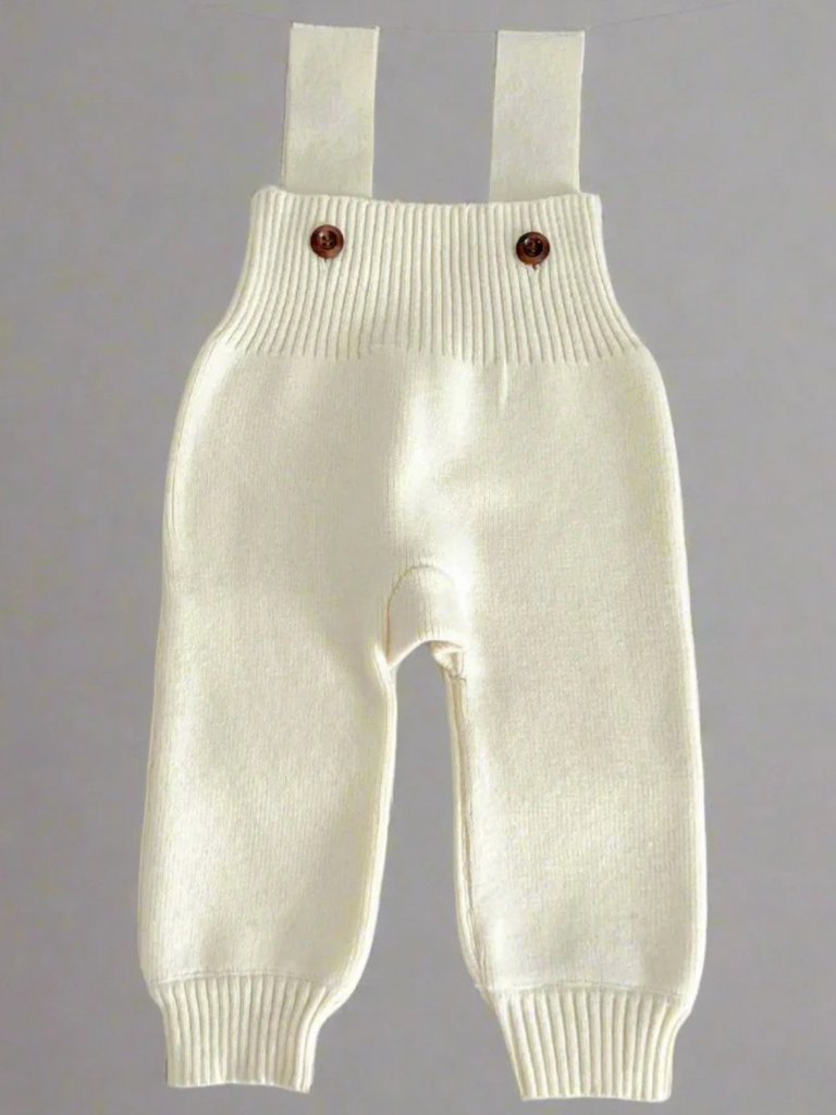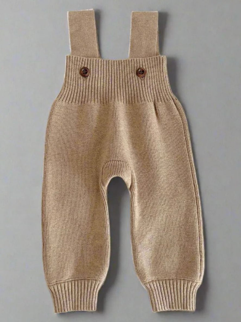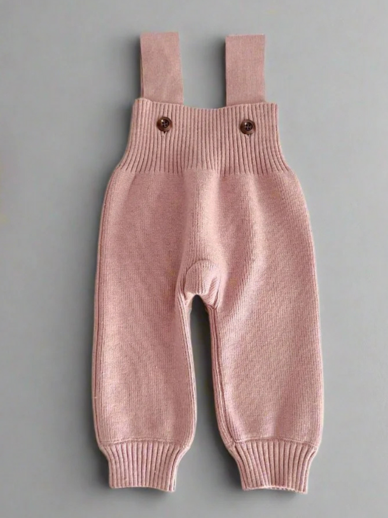 This soft and stylish pair of knitted overalls is designed to keep your little one comfortable while looking adorable. Made from a gentle, ribbed knit fabric, these overalls offer a perfect balance of warmth and breathability. With their classic design and easy-to-wear features, they are a must-have for your baby’s wardrobe.