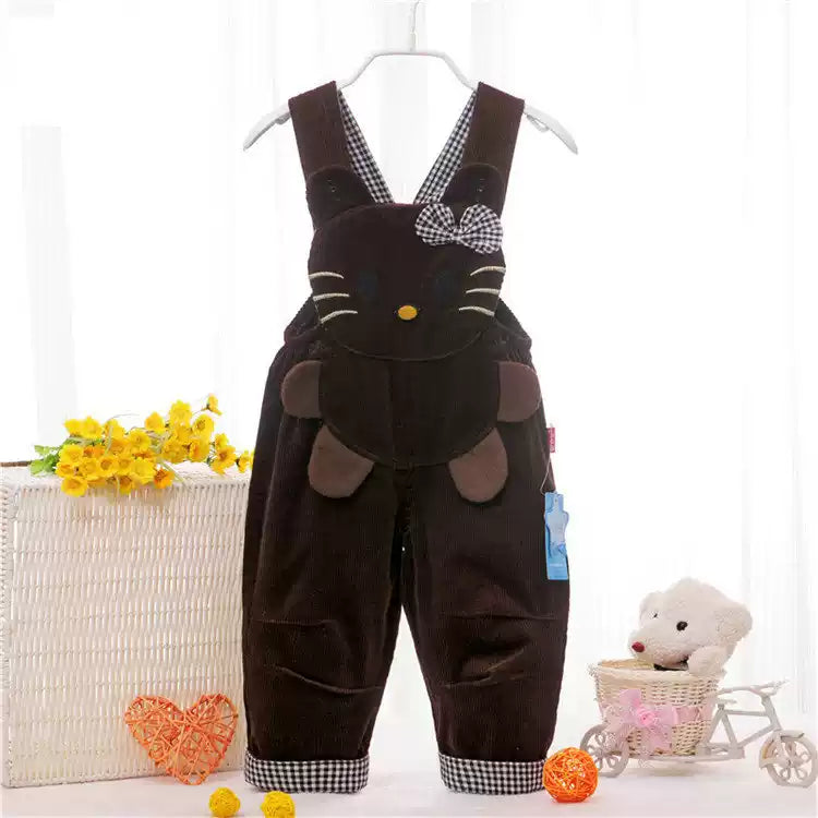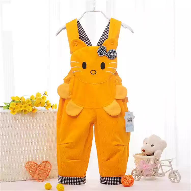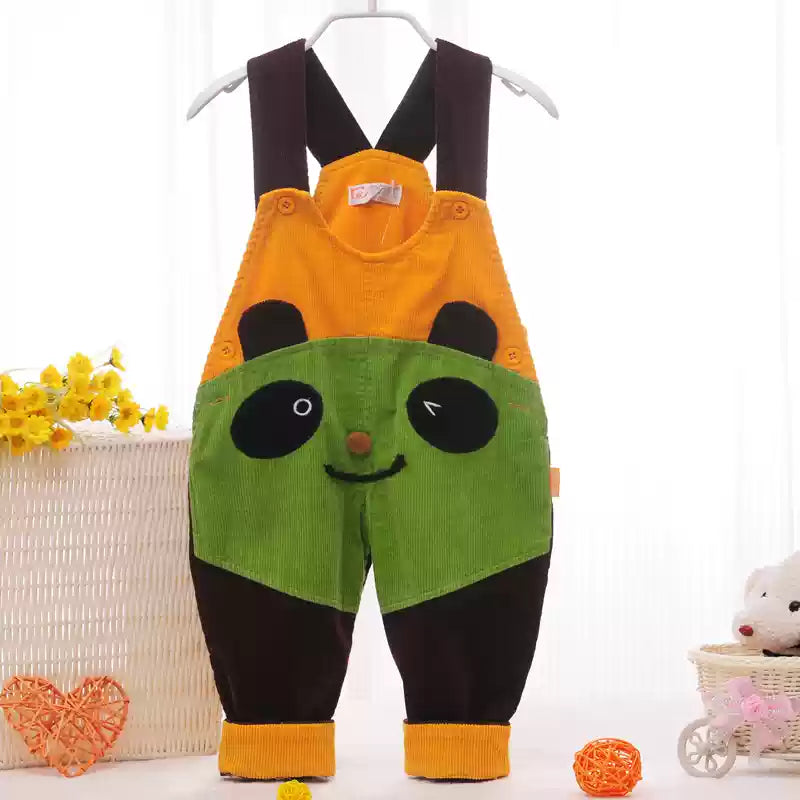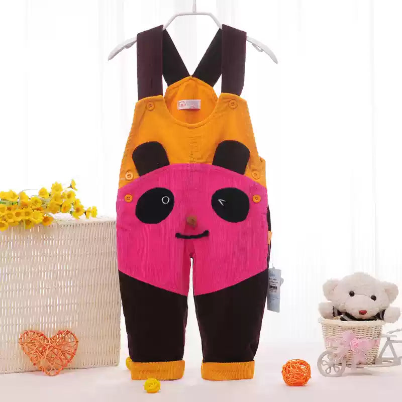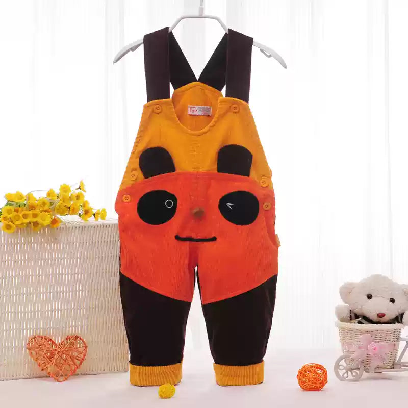 Dress your little one in this incredibly cute and stylish panda-themed corduroy overall romper! Perfect for fall and winter, this romper is made from soft, cozy corduroy fabric. The playful design features a pink panda face on the front, with brown corduroy accents at the bottom, adding a touch of extra charm. The bright orange top portion adds a pop of color.