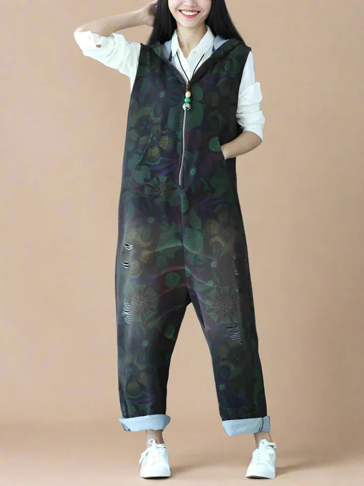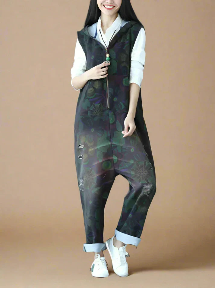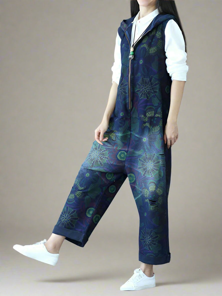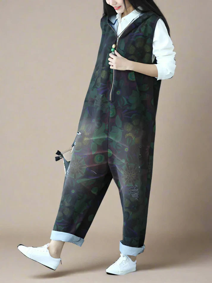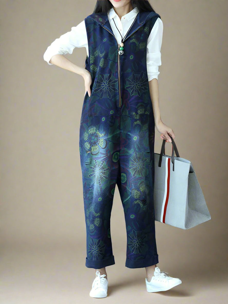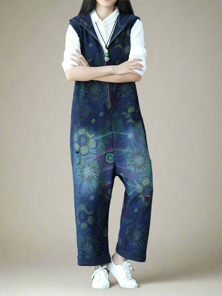 These hooded zipper overalls dungarees are the perfect mix of comfort and style. With a relaxed fit, soft fabric, and a unique dark floral print, they bring a cool, effortless vibe to any outfit. The front zipper makes them easy to throw on, while the hood and side pockets add a practical touch. The rolled-up cuffs and slightly tapered legs give them a laid-back yet stylish feel. Whether you're running errands, hanging out with friends, or just want something comfy to wear, these overalls are a great go-to piece. Just pair them with sneakers and a simple top, and you’re good to go!