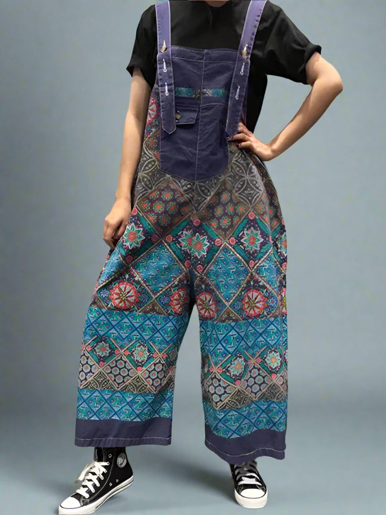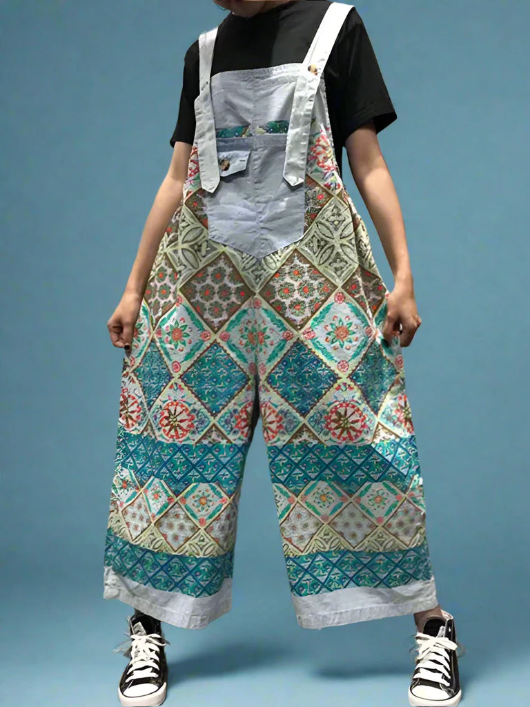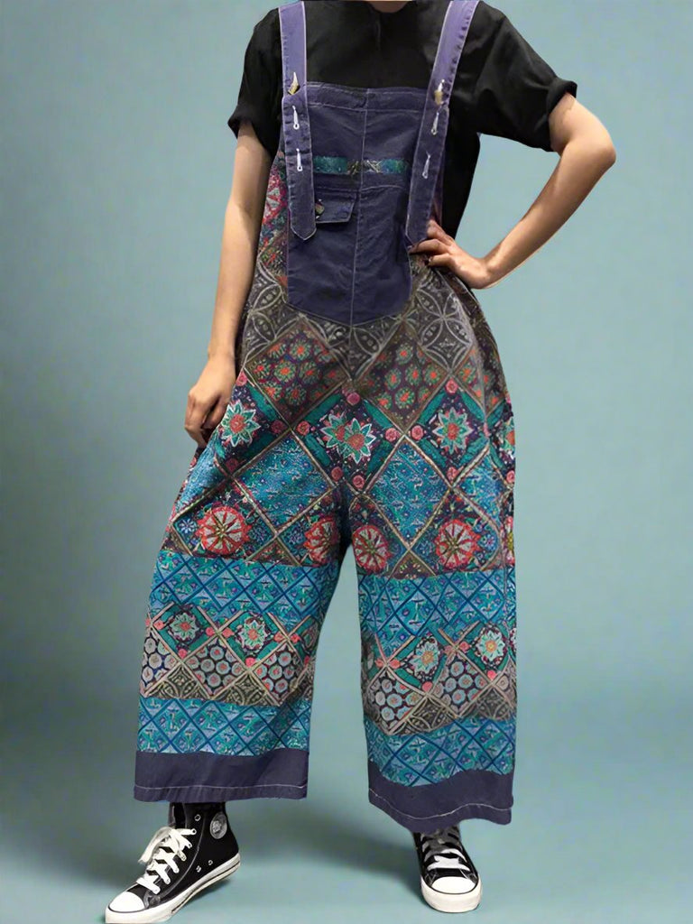 Stay stylish,chic and comfortable with our flowy functionality cotton overalls dungarees. Crafted from lightweight cotton these overalls offer a relaxed fit with a graceful flowy silhouette. Designed with adjustable button straps and delicate floral prints, the dress captures a laid-back appeal. Pockets at front and back provide both style and practicality. Which is perfect for casual outings, layering up in style and all day wear.