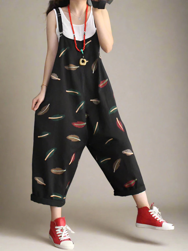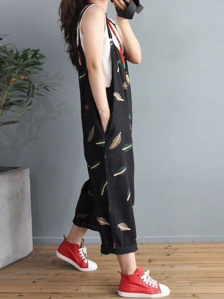 These feather print overalls give you the perfect trendsetting style and also an expression of your love for unique fashion. Crafted from high-quality cotton these monochrome overalls have dramatic and avant-garde. Adjustable straps providing a customizable fit and pockets on trousers add a functional and stylish element to your outfit. This feather print overalls is a wardrobe staple that never goes out of style.
