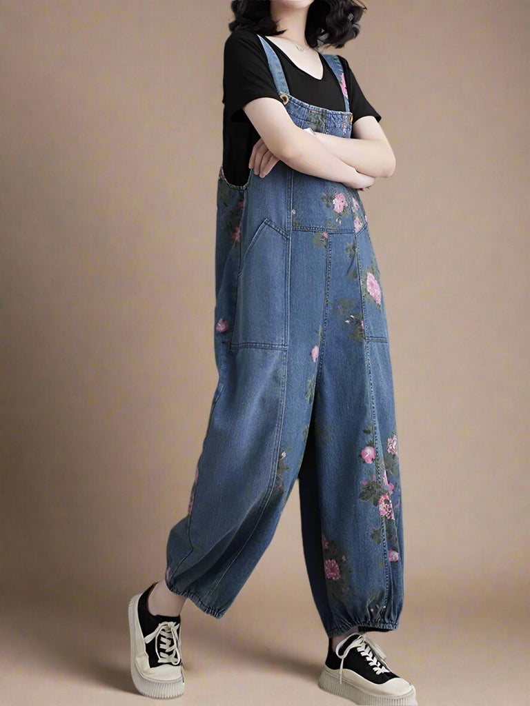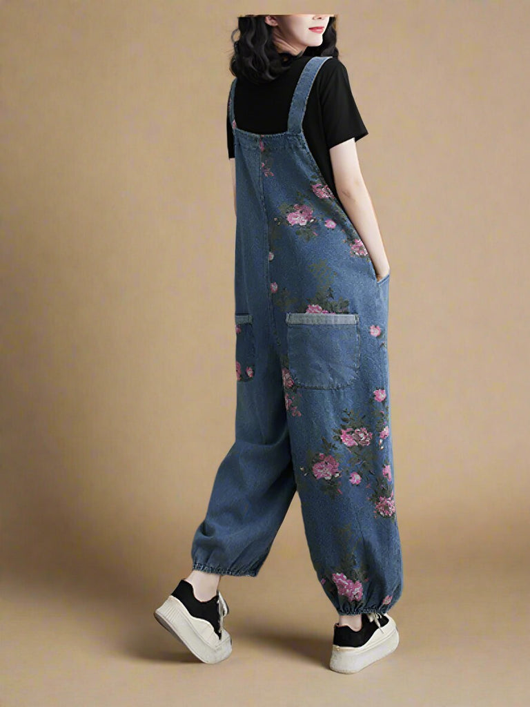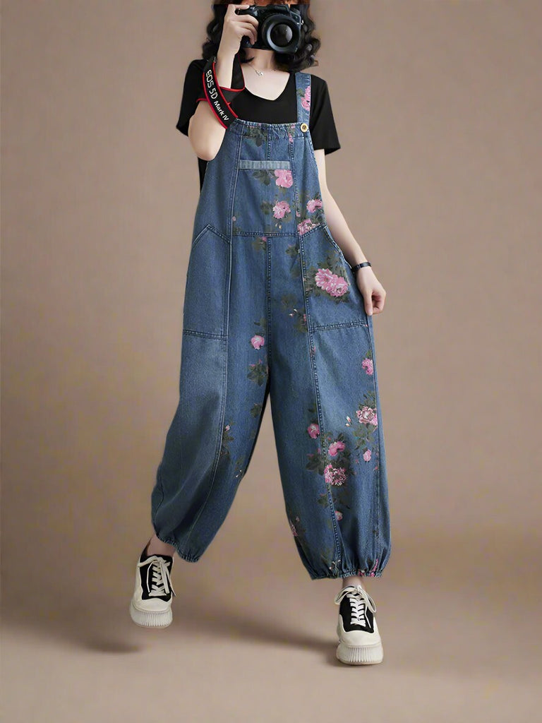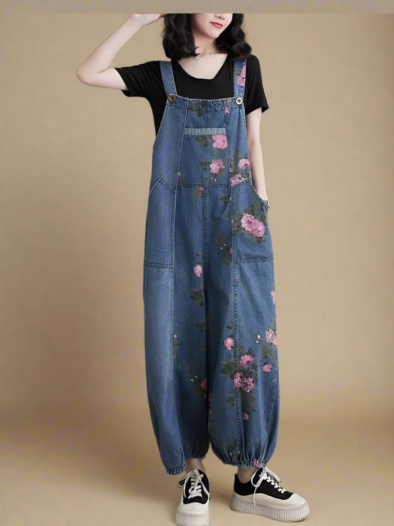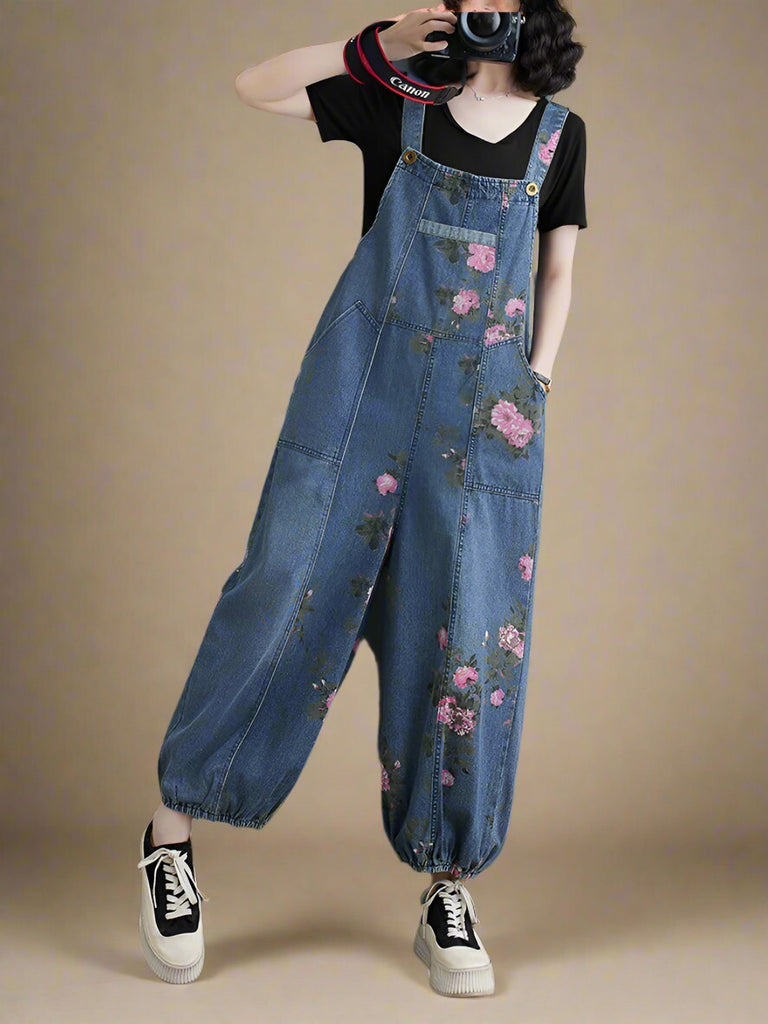 Do you imagine yourself feeling like a blooming flower in the Petal Denim Dungarees? Our Petal Denim Jumpsuit Overalls Dungarees are made from soft denim cotton with a trendy petal floral design in pink and green. The structured bib with patch pockets and adjustable straps ensures a secure, stylish fit. With functional front, side, and back pockets, these dungarees offer both convenience and fashion. The relaxed fit and elastic cuffs at the ankles create a chic, modern silhouette. Ideal for any casual occasion, just pair them with a t-shirt and sneakers for an effortlessly cool look.
