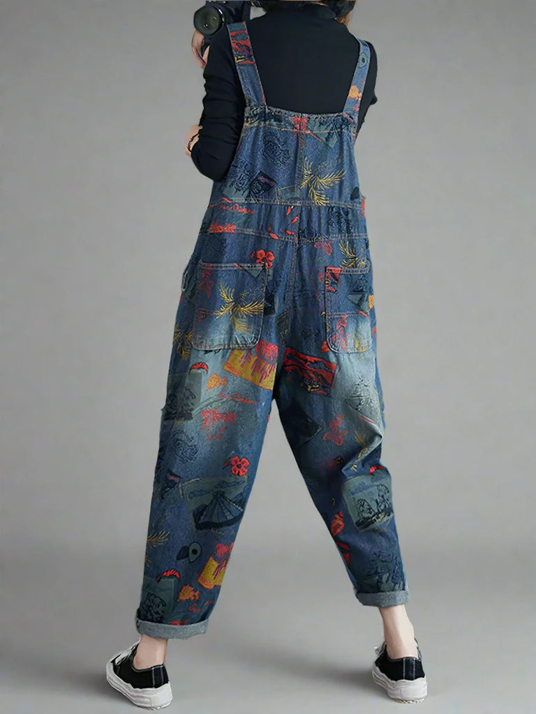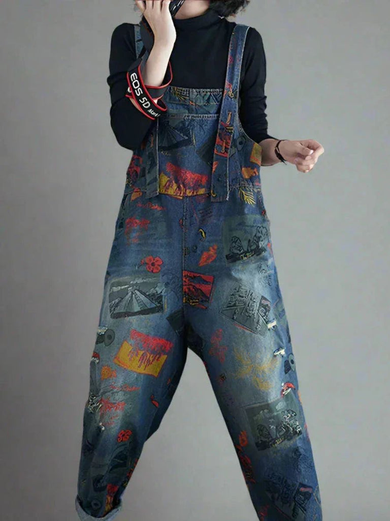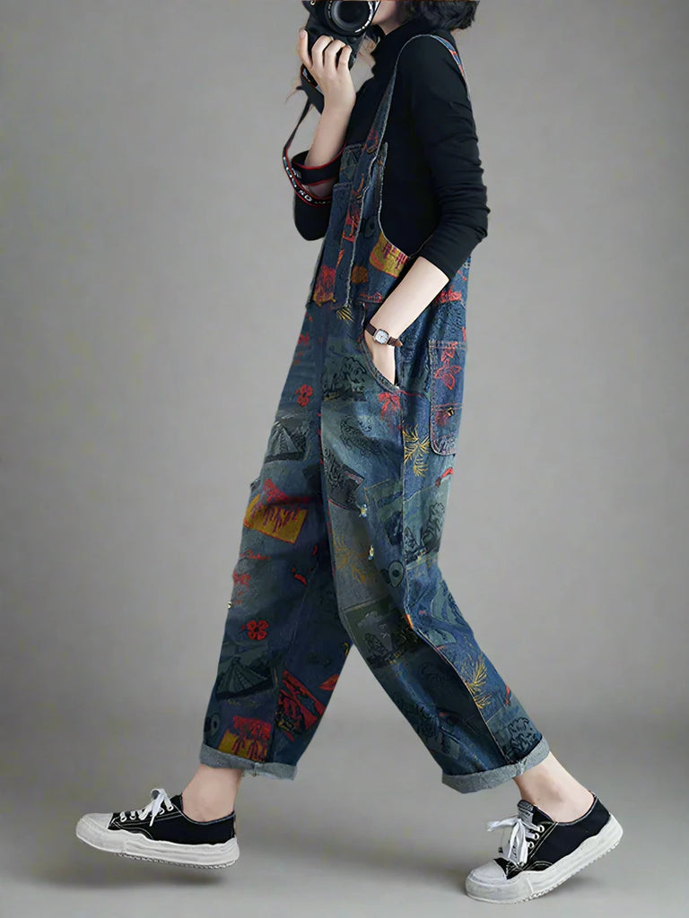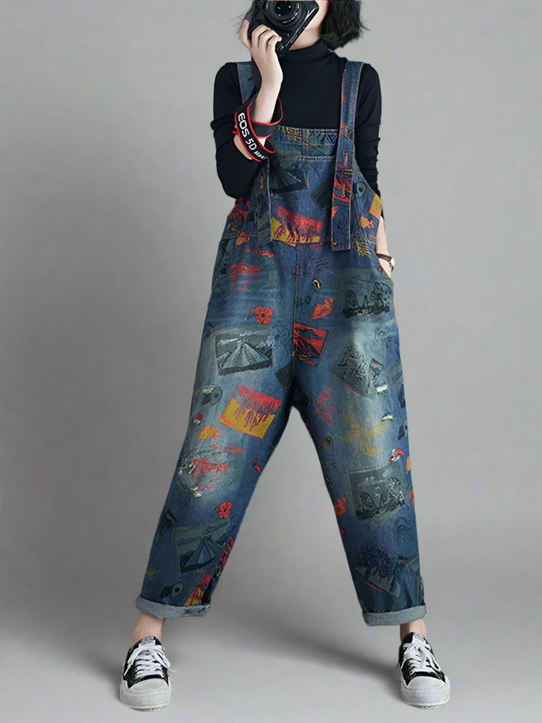 These Vintage Drippin Cotton Overalls Dungarees are made from thick cotton and denim for year-round wear. The classic blue denim is designed with vibrant graffiti-style prints in red, yellow, and orange, adding a street-style edge. With a relaxed fit and adjustable straps, these dungarees provide comfort and a customizable fit, making them perfect for casual outings or hanging with friends. They combine functionality, a bold, unique design, and are ideal for any season.