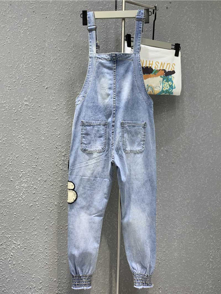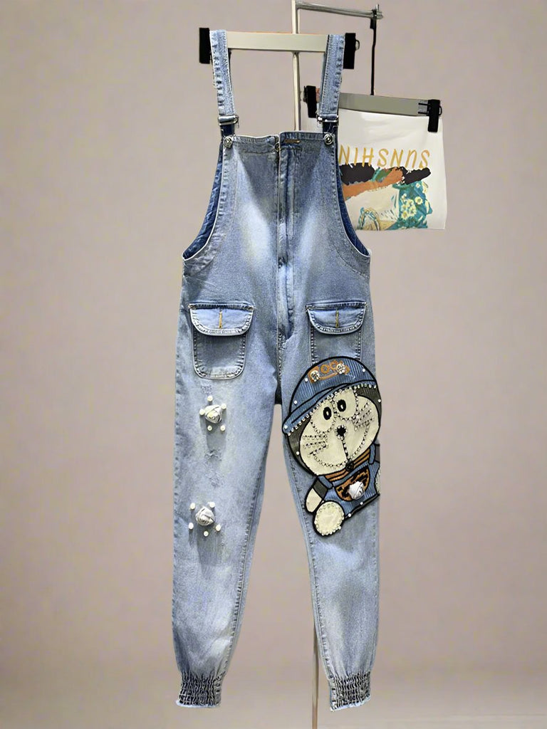 * **Eye-catching Embellishments:** Adorable embroidered character patches add a unique and whimsical touch. Additional pearl-like accents are scattered throughout for extra detail.